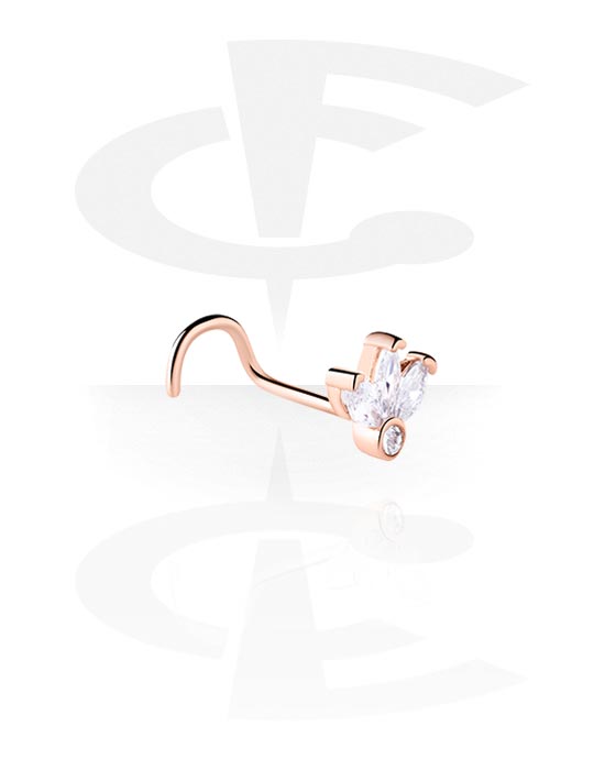 Zakrivljeni nosni klin (kirurški čelik, ružičasto zlato, sjajna završna obrada) s kristalnim kamenjem