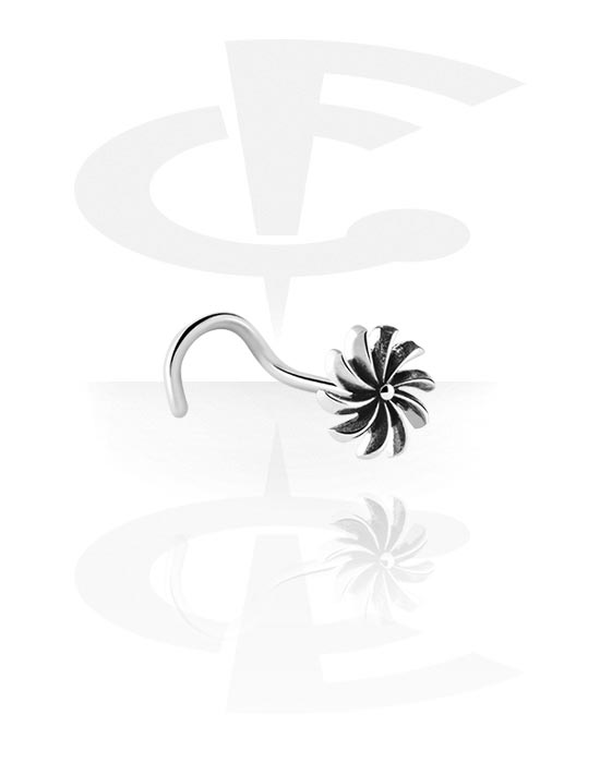 Zakrivljeni klin za nos (kirurški čelik, srebrna, sjajna završna obrada) s cvjetnim dodatkom