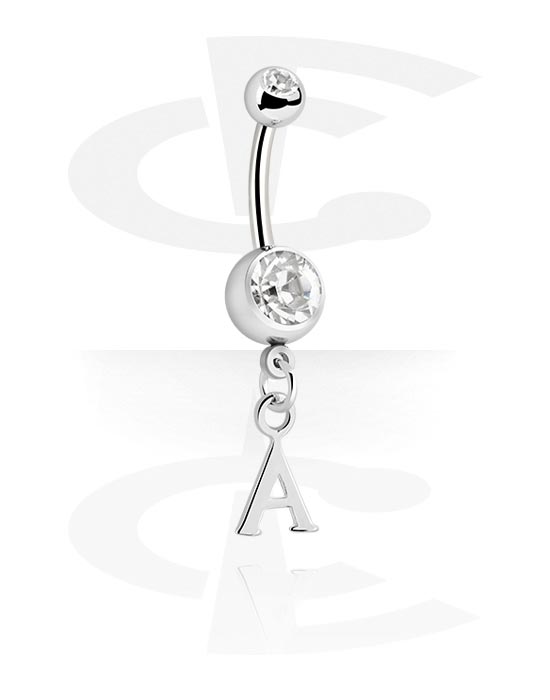 Prsten za pupak (kirurški čelik, srebrna, sjajna završna obrada) s privjeskom sa slovom "A" i kristalnim kamenjem