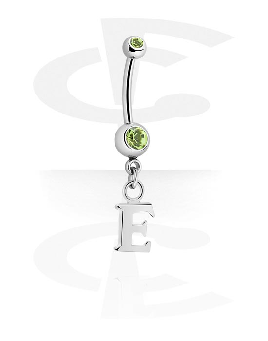 Prsten za pupak (kirurški čelik, srebrna, sjajna završna obrada) s Kuglicama s draguljima i privjeskom sa slovom "E"