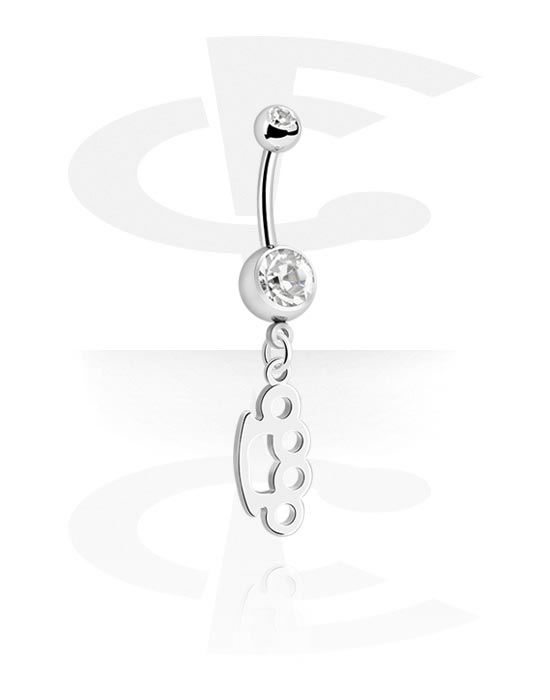 Prsten za pupak (kirurški čelik, srebrna, sjajna završna obrada) s privjeskom boksera i kristalnim kamenjem