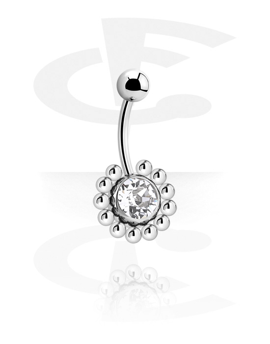 Prsten za pupak (kirurški čelik, srebrna, sjajna završna obrada) s cvjetnim dizajnom i kristalnim kamenom