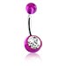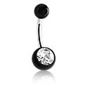 This curved barbell comes with two brightly coloured acrylic balls, one of them featuring a sparkling crystal. Looks awesome in any colour.