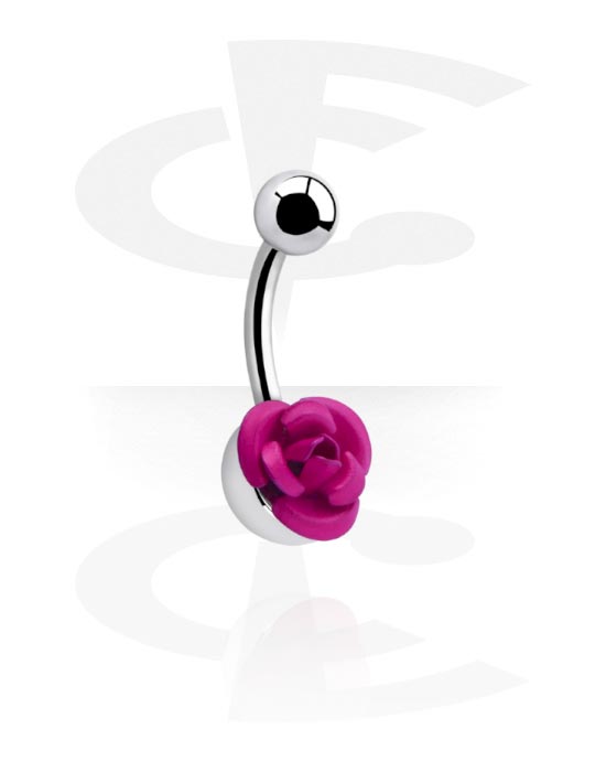 Prsten za pupak (kirurški čelik, srebrna, sjajna završna obrada) s dizajnom ruže