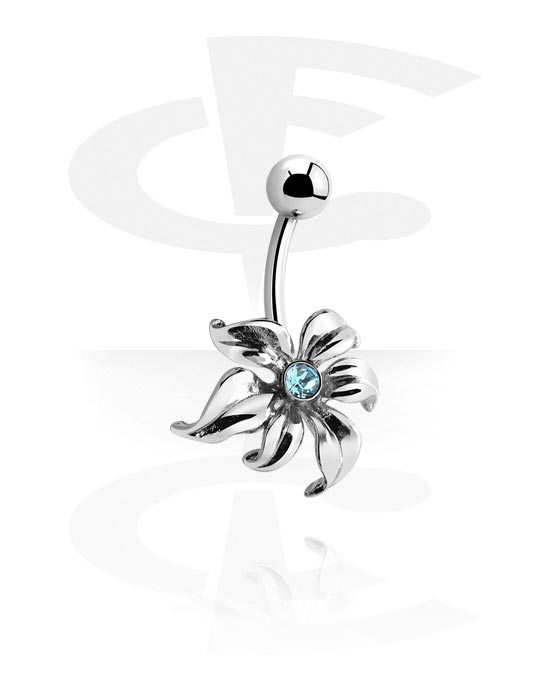 Prsten za pupak (kirurški čelik, srebrna, sjajna završna obrada) s cvjetnim dodatkom i kristalnim kamenom