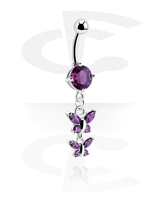 Prsten za pupak (kirurški čelik, srebrna, sjajna završna obrada) s privjeskom s leptirom i kristalnim kamenjem