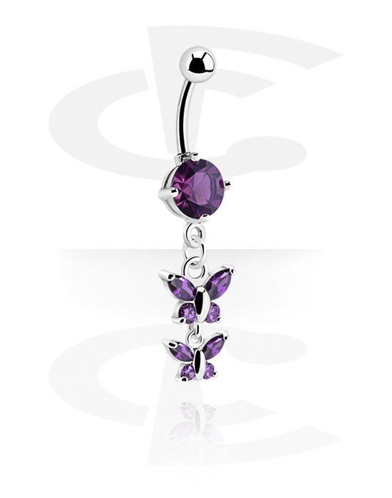 Prsten za pupak (kirurški čelik, srebrna, sjajna završna obrada) s privjeskom s leptirom i kristalnim kamenjem