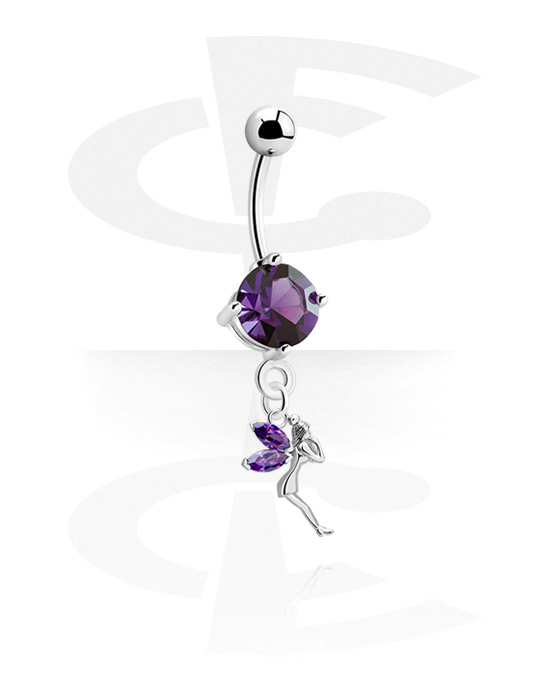 Prsten za pupak (kirurški čelik, srebrna, sjajna završna obrada) s privjeskom vile i kristalnim kamenjem