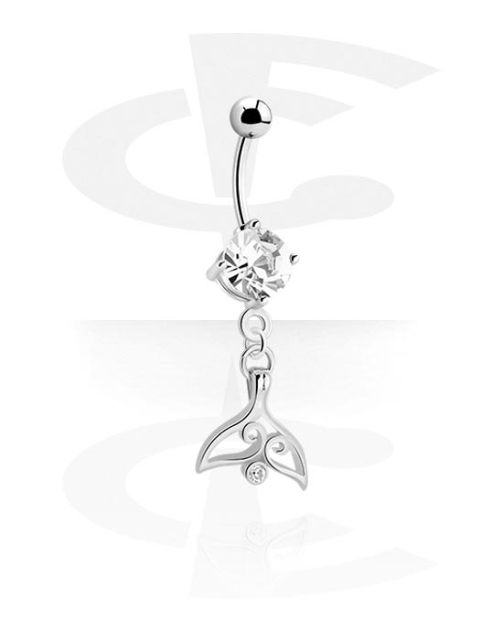 Prsten za pupak (kirurški čelik, srebrna, sjajna završna obrada) s Dizajnom repne peraje i kristalnim kamenjem