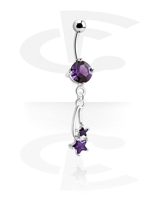 Prsten za pupak (kirurški čelik, srebrna, sjajna završna obrada) s privjeskom sa zvijezdom i kristalnim kamenjem