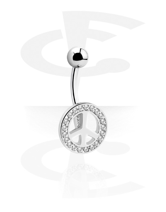 Prsten za pupak (kirurški čelik, srebrna, sjajna završna obrada) s simbolom mira i kristalnim kamenjem