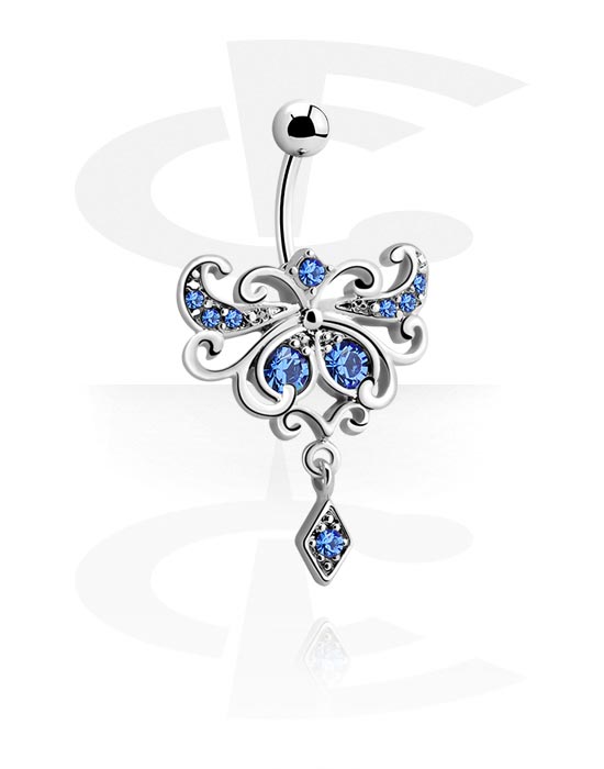 Prsten za pupak (kirurški čelik, srebrna, sjajna završna obrada) s kristalnim kamenjem