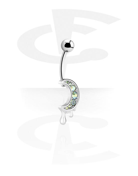 Prsten za pupak (kirurški čelik, srebrna, sjajna završna obrada) s dizajnom mjeseca i kristalnim kamenjem