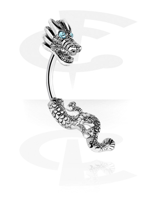Prsten za pupak (kirurški čelik, srebrna, sjajna završna obrada) s dizajnom zmaja i kristalnim kamenjem