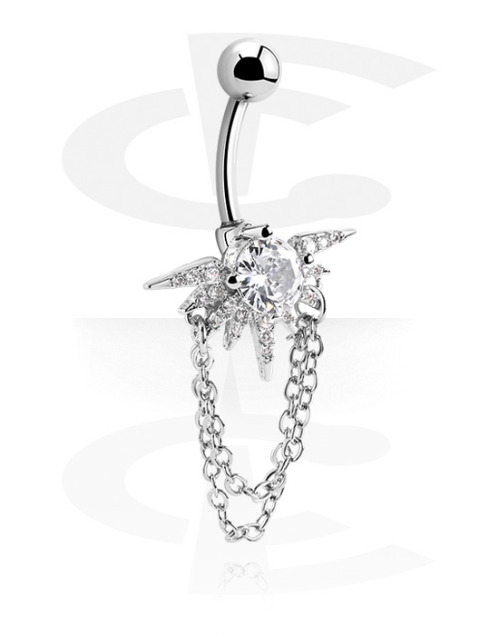 Prsten za pupak (kirurški čelik, srebrna, sjajna završna obrada) s kristalnim kamenjem i lancem