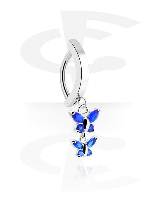 Kliker za pupak (kirurški čelik, srebrna, sjajna završna obrada) s privjeskom s leptirom i kristalnim kamenjem
