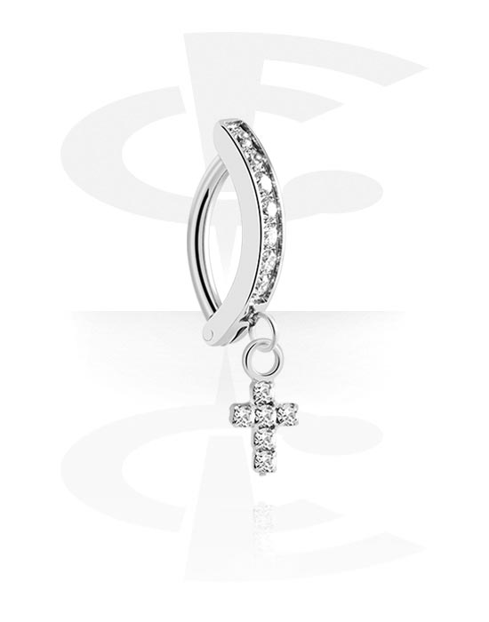 Kliker za pupak (kirurški čelik, srebrna, sjajna završna obrada) s privjeskm s križem i kristalnim kamenjem