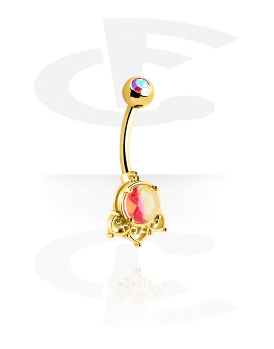 Prsten za pupak (kirurški čelik, zlatna, sjajna završna obrada) s kristalnim kamenjem