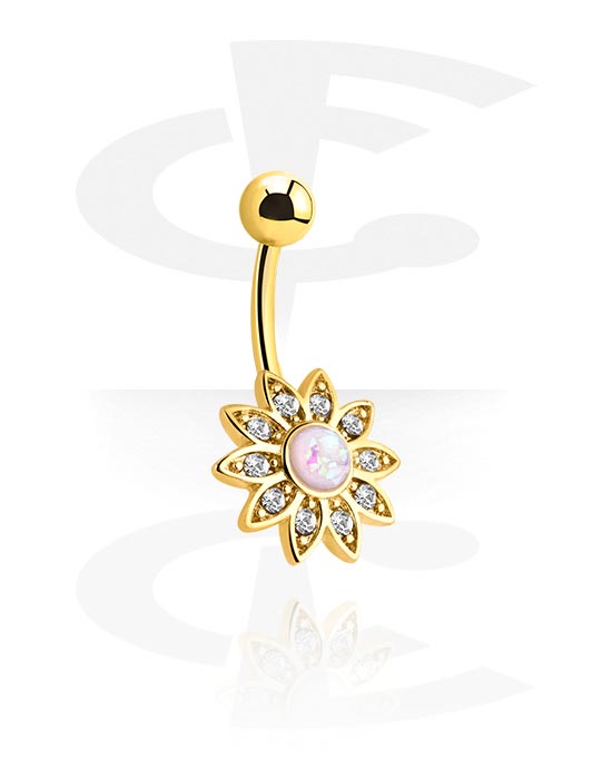 Prsten za pupak (kirurški čelik, zlatna, sjajna završna obrada) s kristalnim kamenjem