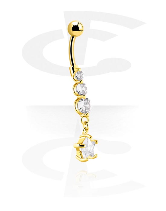 Prsten za pupak (kirurški čelik, zlatna, sjajna završna obrada) s dizajnom zvijezde i kristalnim kamenjem