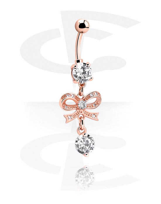 Prsten za pupak (kirurški čelik, ružičasto zlato, sjajna završna obrada) s dizajnom mašne i kristalnim kamenjem