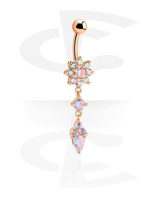 Prsten za pupak (kirurški čelik, ružičasto zlato, sjajna završna obrada) s kristalnim kamenjem