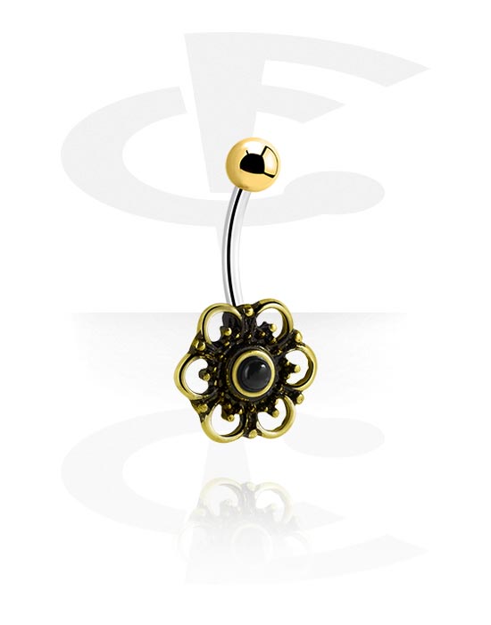 Prsten za pupak (kirurški čelik, zlatna, sjajna završna obrada) s cvjetnim dizajnom