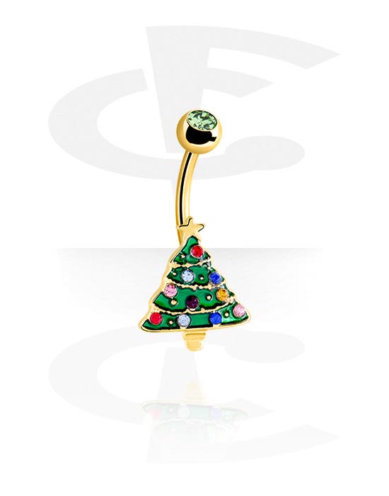 Prsten za pupak (kirurški čelik, zlatna, sjajna završna obrada) s Dizajnom božićnog drvca i kristalnim kamenjem