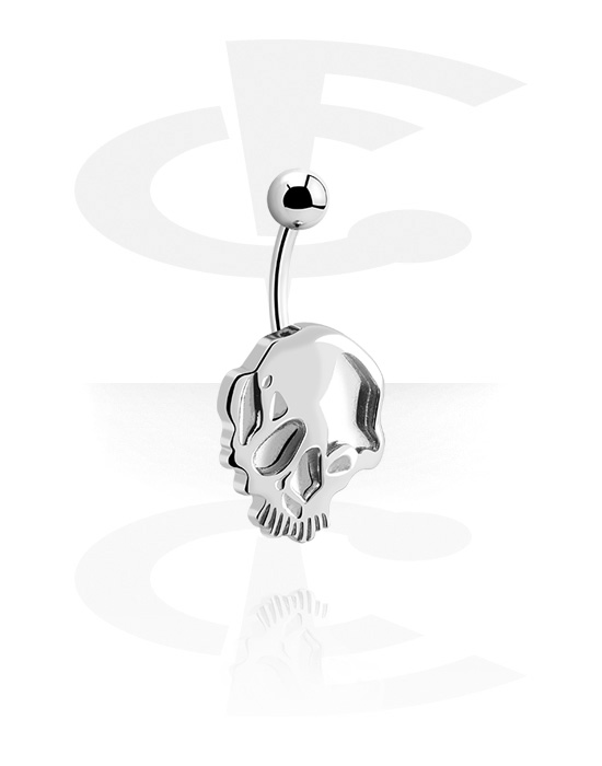 Prsten za pupak (kirurški čelik, srebrna, sjajna završna obrada) s dizajnom lubanje