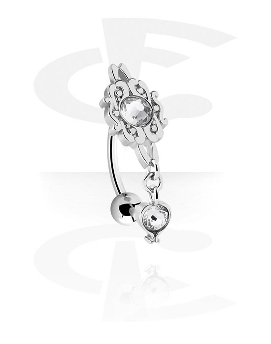 Prsten za pupak (kirurški čelik, srebrna, sjajna završna obrada) s kristalnim kamenjem