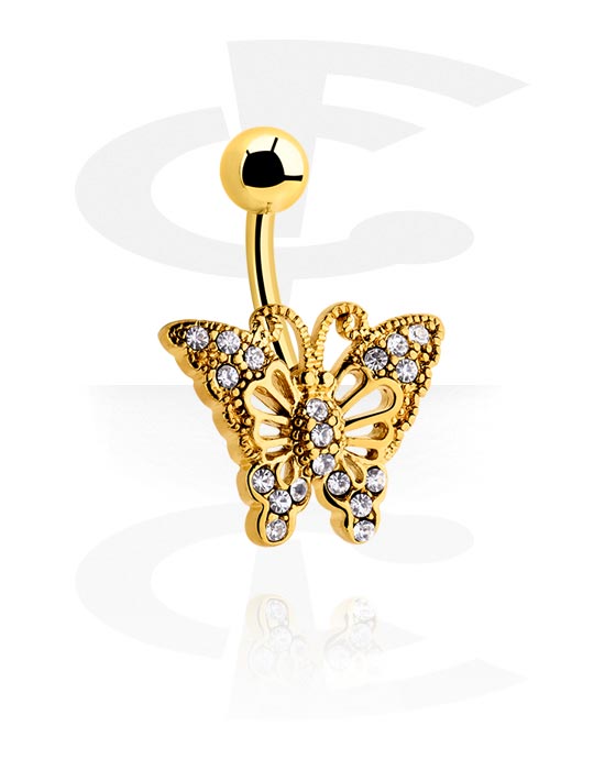 Prsten za pupak (kirurški čelik, zlatna, sjajna završna obrada) s dizajnom leptira i kristalnim kamenjem