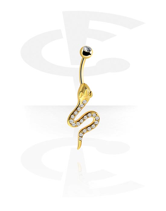 Prsten za pupak (kirurški čelik, zlatna, sjajna završna obrada) s zmijskim dizajnom i kristalnim kamenjem
