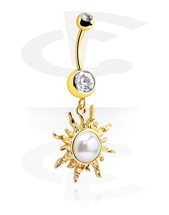 Prsten za pupak (kirurški čelik, zlatna, sjajna završna obrada) s privjeskom sunca i kristalnim kamenjem