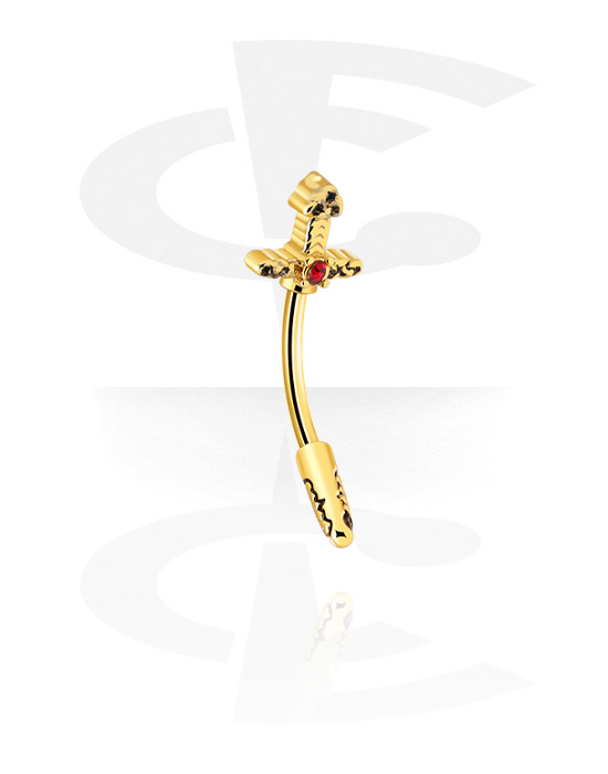 Prsten za pupak (kirurški čelik, zlatna, sjajna završna obrada) s dizajnom mača i kristalnim kamenjem