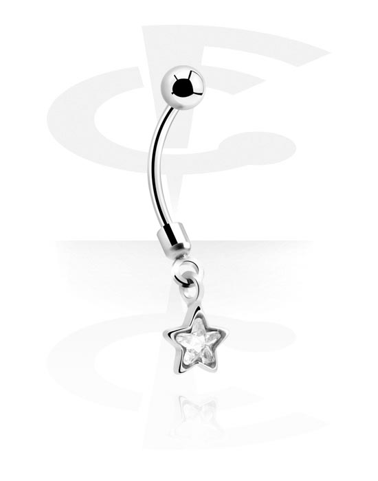 Prsten za pupak (kirurški čelik, srebrna, sjajna završna obrada) s privjeskom sa zvijezdom i kristalnim kamenom