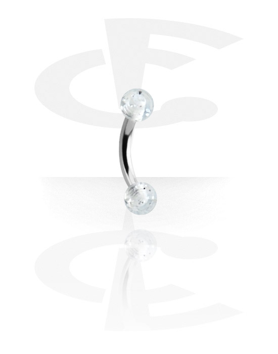 If you like a bit of glitter, check out this curved barbell made of surgical steel with two threaded glitter balls. Available in different colours.