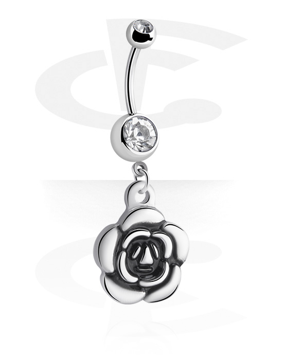 Prsten za pupak (kirurški čelik, srebrna, sjajna završna obrada) s dizajnom ruže i kristalnim kamenjem