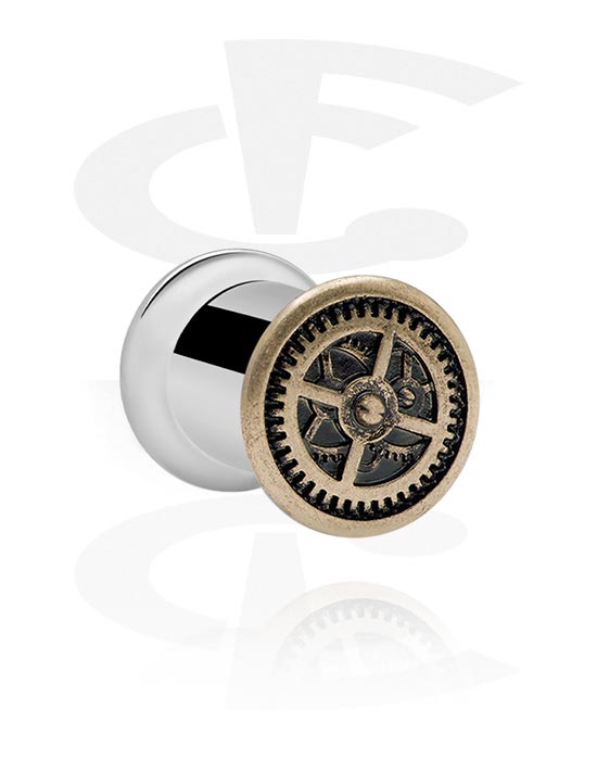 Dvostruki prošireni tunel (kirurški čelik, srebrna, sjajna završna obrada) s dodatkom steampunk
