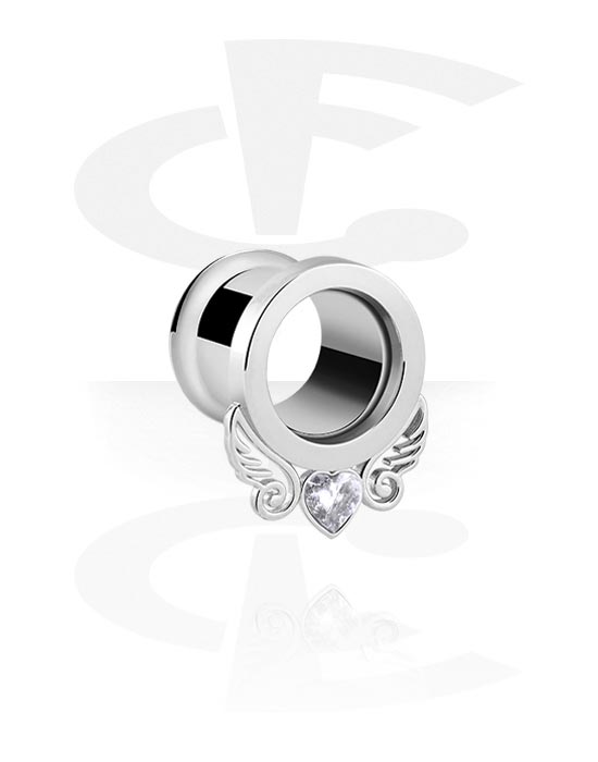 Dvostruki prošireni tunel (kirurški čelik, srebrna, sjajna završna obrada) s dizajnom srca i kristalnim kamenom