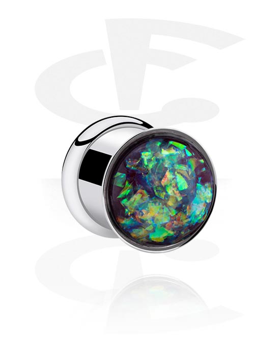 Dvostruki prošireni tunel (kirurški čelik, srebrna, sjajna završna obrada) s šarenim čepom