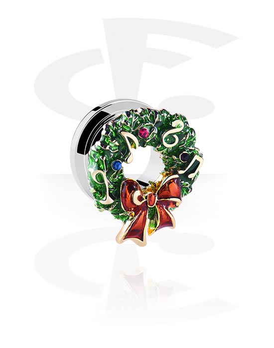 Tunel koji se priteže (kirurški čelik, srebrna, sjajna završna obrada) s Božićnim vijencem i kristalnim kamenjem