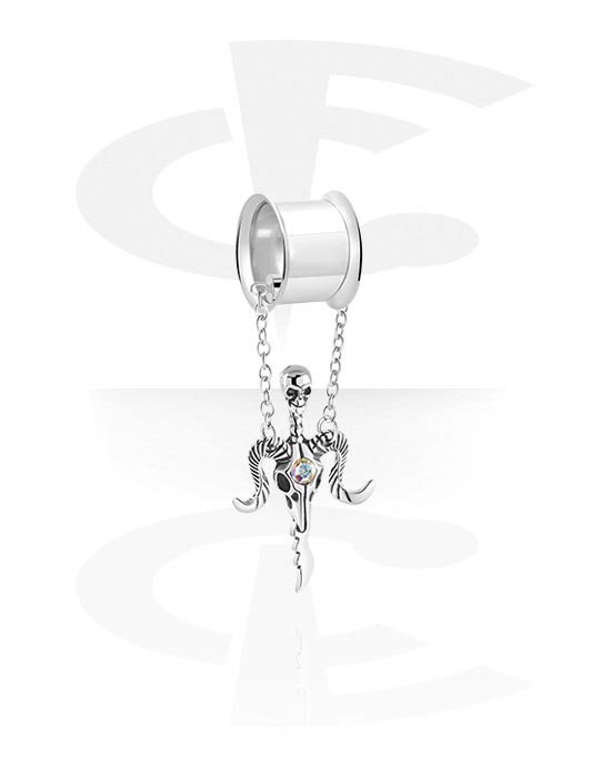 Dvostruki prošireni tunel (kirurški čelik, srebrna, sjajna završna obrada) s dizajnom lubanje i Goat head design