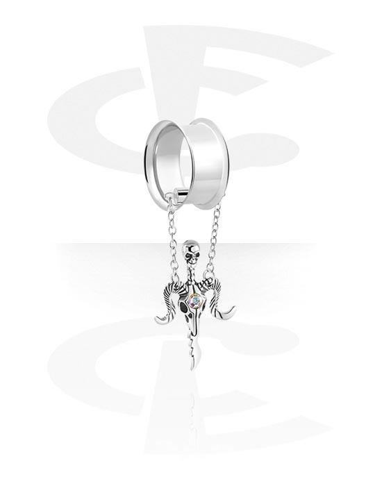 Dvostruki prošireni tunel (kirurški čelik, srebrna, sjajna završna obrada) s dizajnom lubanje i Goat head design