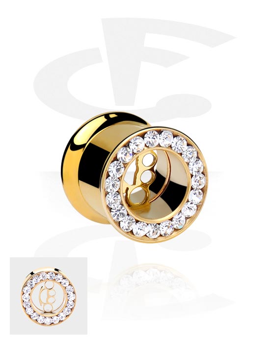Dvostruki prošireni tunel (kirurški čelik, zlatna, sjajna završna obrada) s dizajnom metalnog boksera i kristalnim kamenjem