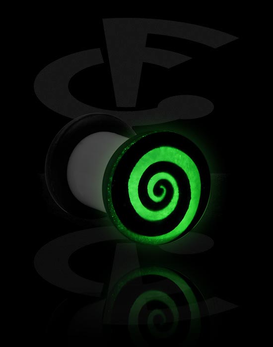 Jednostruki prošireni čepić "sjaj u tami" (akril, bijeli) s spiralnim dizajnom i O-prstenom