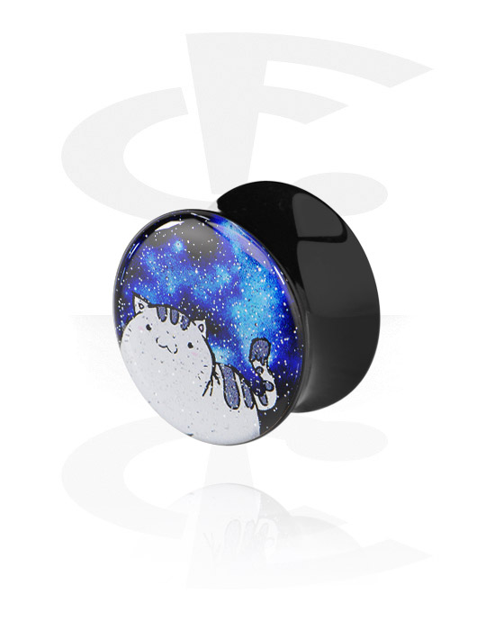 Printed Glitter Flared Plug with exclusive Crapwaer design, made of black acrylic.
