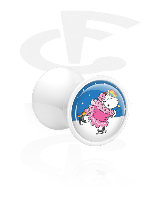 Dvostruki prošireni čepić (akril, bijeli) s Dizajnom debeljuškastog jednoroga