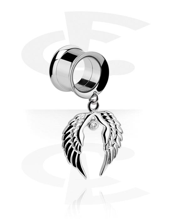 Dvostruki prošireni tunel (kirurški čelik, srebrna, sjajna završna obrada) s privjeskom s krilima i kristalnim kamenom