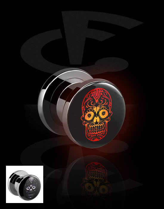 Tunel koji se priteže (kirurški čelik, srebrna, sjajna završna obrada) s LED dodatkom i crno-bijelim dizajnom šećerne lubanje "Dia de Los Muertos"