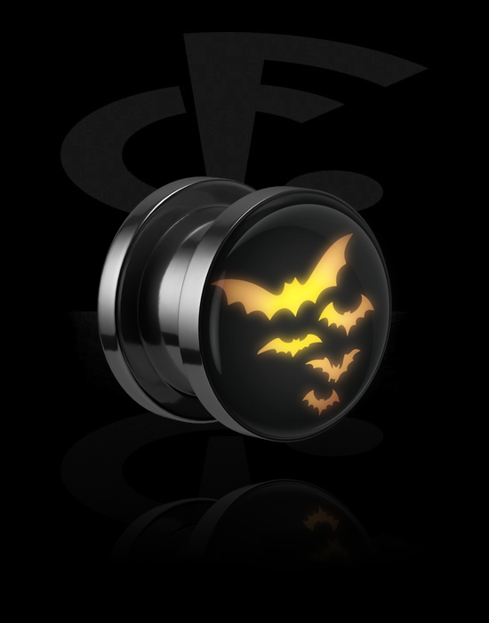 Tunel koji se priteže (kirurški čelik, crna, sjajna završna obrada) s LED dodatkom i dizajnom šišmiša